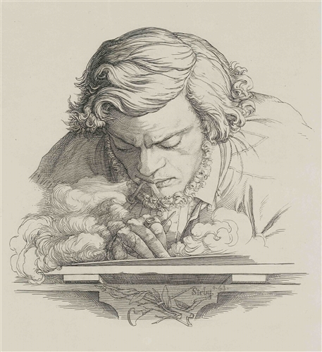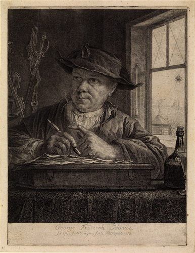 Although not as numerous as those of painters and draughtsmen, representations of printmakers at work form a notable group within the Katrin Bellinger collection. Executed in a variety of media, these images range in date from the 17th century to today. As a group, they show the continued fascination with the tools and craftsmanship required to realize printed images. They also shed light on how the status of the artist-printmaker was negotiated through the genres of self-portraiture and the studio scene.