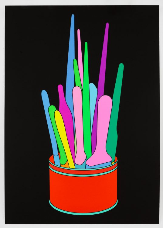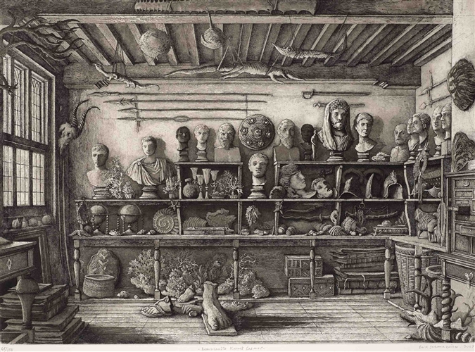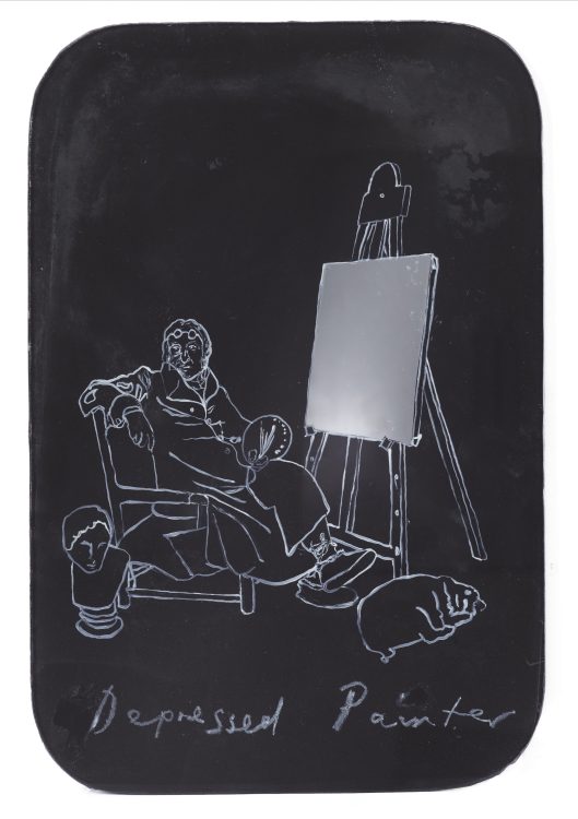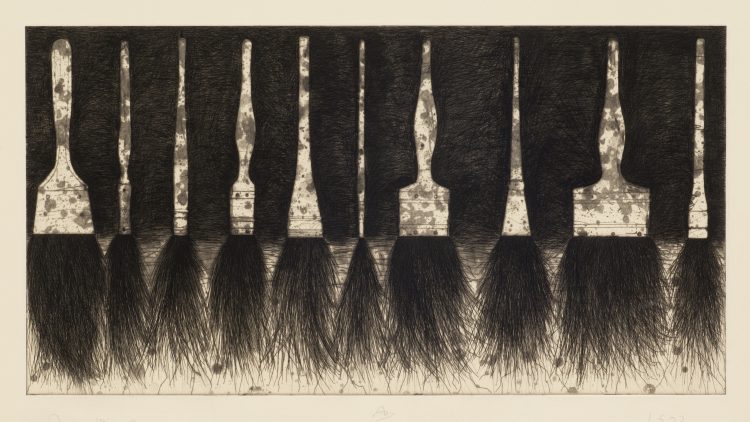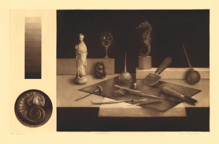 From the early 1960s, American artist Jim Dine deployed his paintbrush and studio tools as markers of his persona, in what he called an ‘autobiography through objects’. Contemporary Norwegian printmaker Erling Valtyrson also self-identified with his tools and exotic collectables by titling his mezzotint, Self-portrait.
