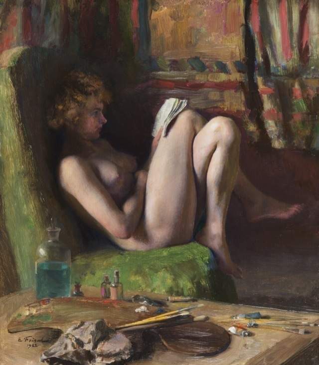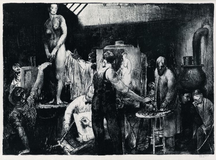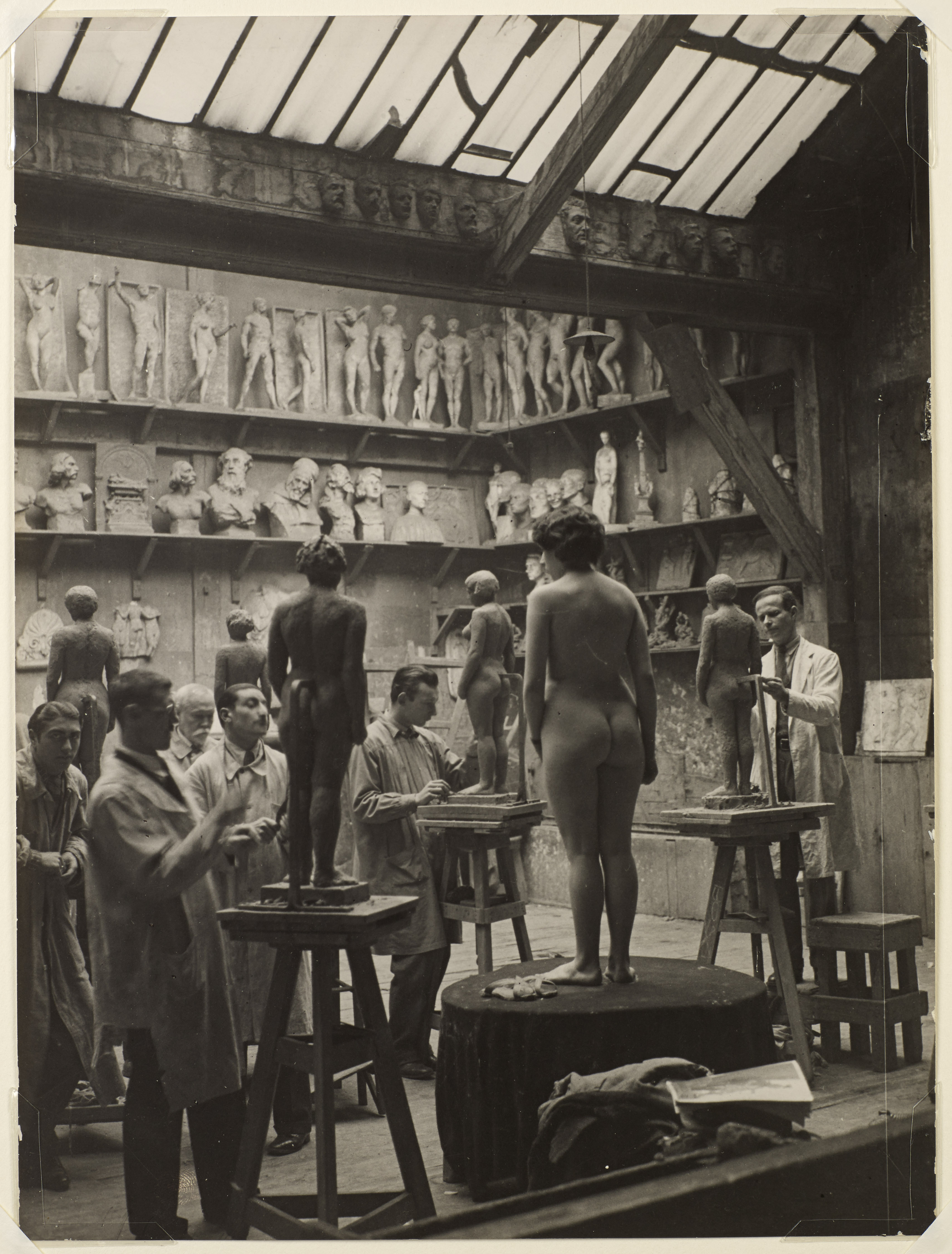 Numerous 20th-century photographs capture the interaction between artist and model both in the studio and in the art school. Less well represented is the experience of women artists working from the nude model, a taboo that long outlived the restrictions imposed on women’s artistic education. It is refreshing to see Bill Brandt’s shot of a nude model posing for Brynhild Parker, showing her as a fine practitioner of the British figurative style.