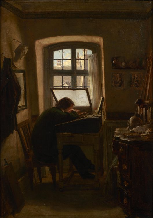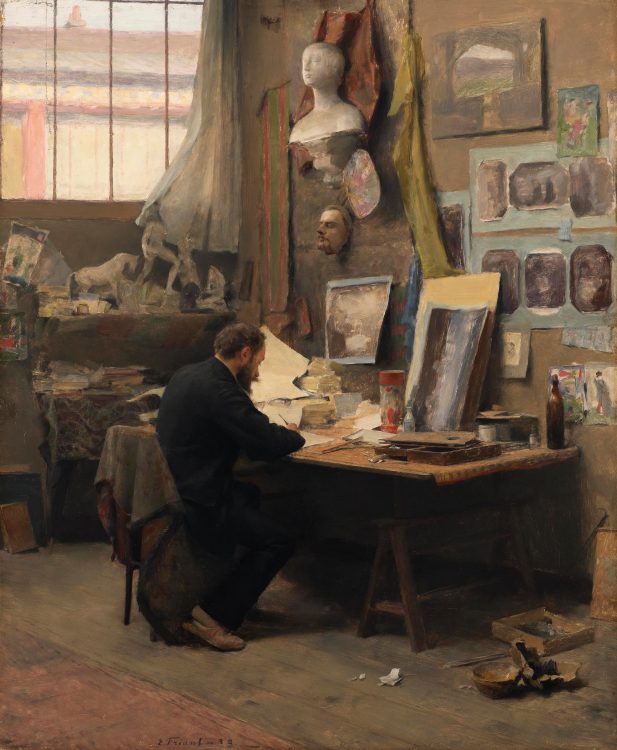 Although the theme of the artist at work is harder to find in Katrin Bellinger’s favourite area, 16th- and 17th-century Italian drawings, the collection does include some beautiful examples by Parmigianino, Pier Francesco Mola and Livio Mehus, among others. The 18th century is well represented, both in Italy, with drawings by Giambattista and Domenico Tiepolo, and in France, with Antoine Watteau, Jean-Honoré Fragonard, Hubert Robert and Jean-August-Dominque Ingres. The subject’s omnipresence in the 19th century is reflected in the collection’s holdings, which include Pierre Puvis de Chavannes, Paul Mathey, Georges Seurat and James Ensor. Self-portraits and studio scenes continue to proliferate in the 20th century, as shown by the works of Max Liebermann, Lovis Corinth, William Orpen, Egon Schiele and Horst Janssen.
