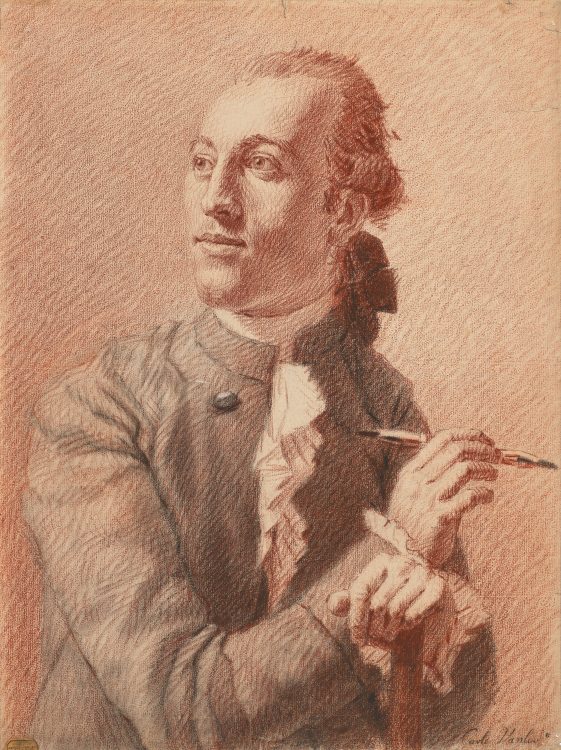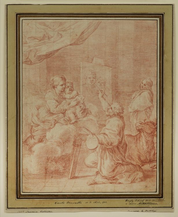 A further notable acquisition is a striking chalk drawing attributed to Carle Van Loo, although this identification is uncertain and research is ongoing. The drawing features a large-scale portrait of an artist in the midst of painting, and uses careful hatching in both red and black chalk to model the painter’s facial features and clothing. The artist’s costume suggests a late eighteenth-century date, placing it outside of Van Loo’s remit.