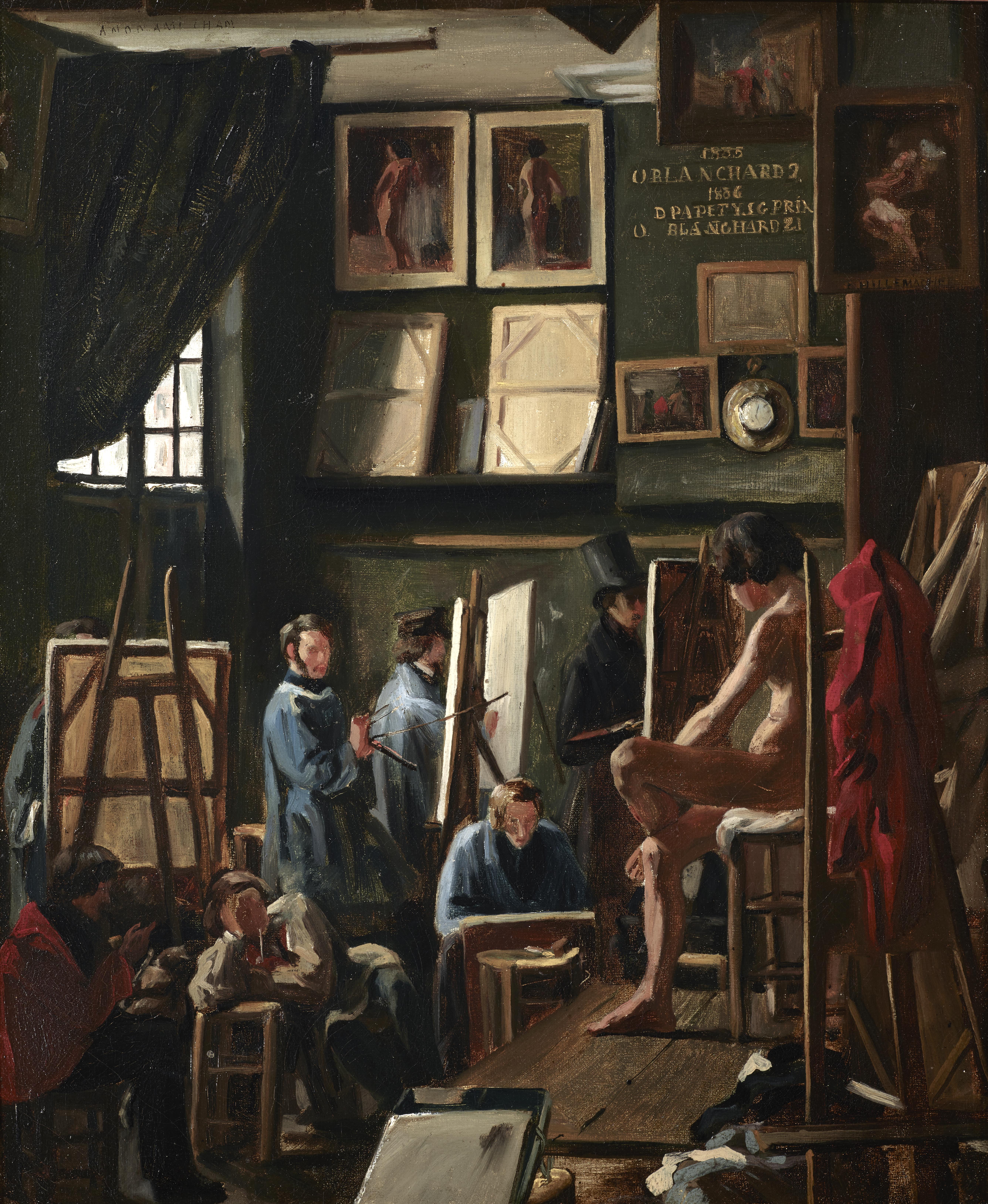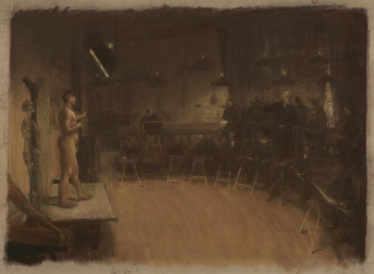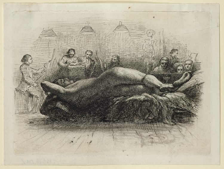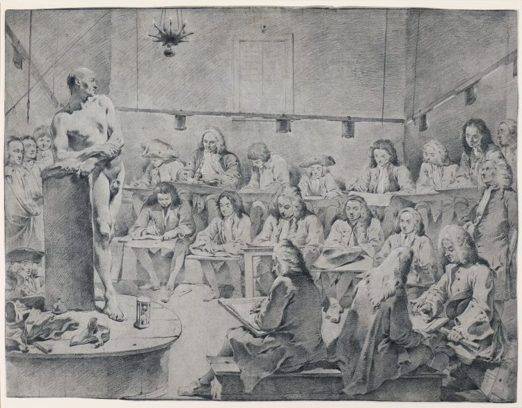 Drawing from life was the final stage in the three-part training prescribed for artists since the Renaissance. Young apprentices first had to train their hand by copying their master’s drawings and studying antique casts. French academies introduced the life class in the 17th century, admitting male models exclusively. From its establishment in late 1768, the Royal Academy of Art in London also prescribed several years of drawing the nude for its pupils. A comprehensive understanding of the workings of the male body was considered essential for any artist regardless of his future ambitions.