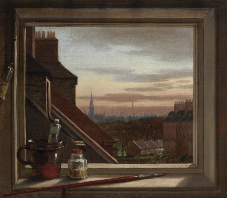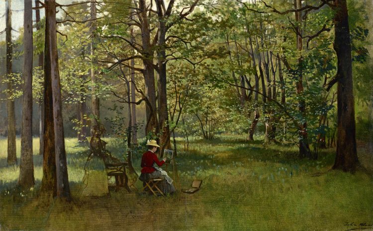 Indeed, although drawing implements, watercolours and sketchbooks are easily transported, the equipment available to artists before the 19th century limited their ability to produce a finished painting in nature. Pigments had to be ground and mixed with linseed oil to obtain colours, and a pig’s bladder was needed to carry them outside the workshop. This changed with the introduction of paint in tubes (invented in 1841) and of lightweight portable easels, contributing to the rise of plein air painting. The method became more widespread from the 1860s and was made famous by the impressionists who advocated the need to capture the quality of natural light and its effect on both landscape and figures.