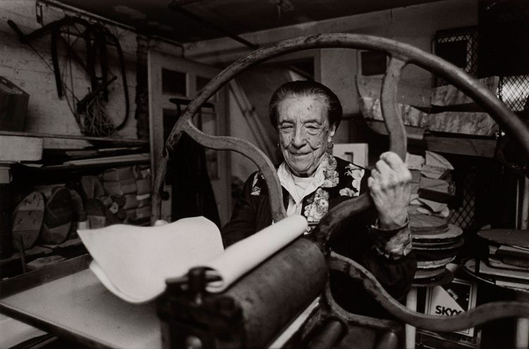 The photography collection has also been enhanced by several images of women artists at work. Kati Horna’s Untitled (Leonora Carrington with Spider) depicts Carrington next to her large-scale painting—the two artists were close friends and both lived in Mexico City. Horna’s portraits of Carrington (and fellow surrealist Remedios Varo) at work reveal the real studio practices behind the imaginative and surreal worlds they created in painting. John Kasmin’s photograph of Niki de Saint Phalle blowing up one of her iconic Nanas similarly pulls back the curtain on the creation of works that are larger-than-life.