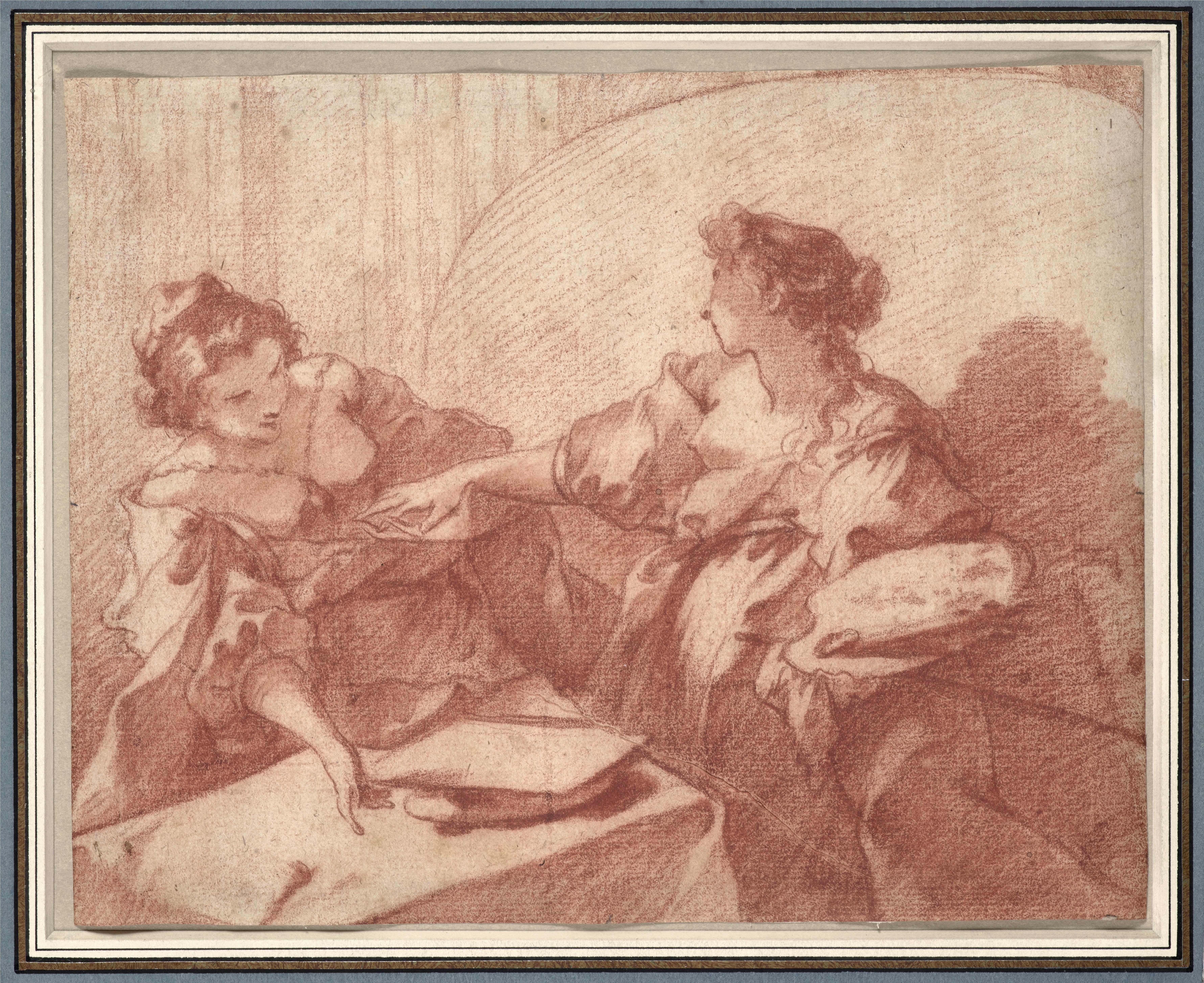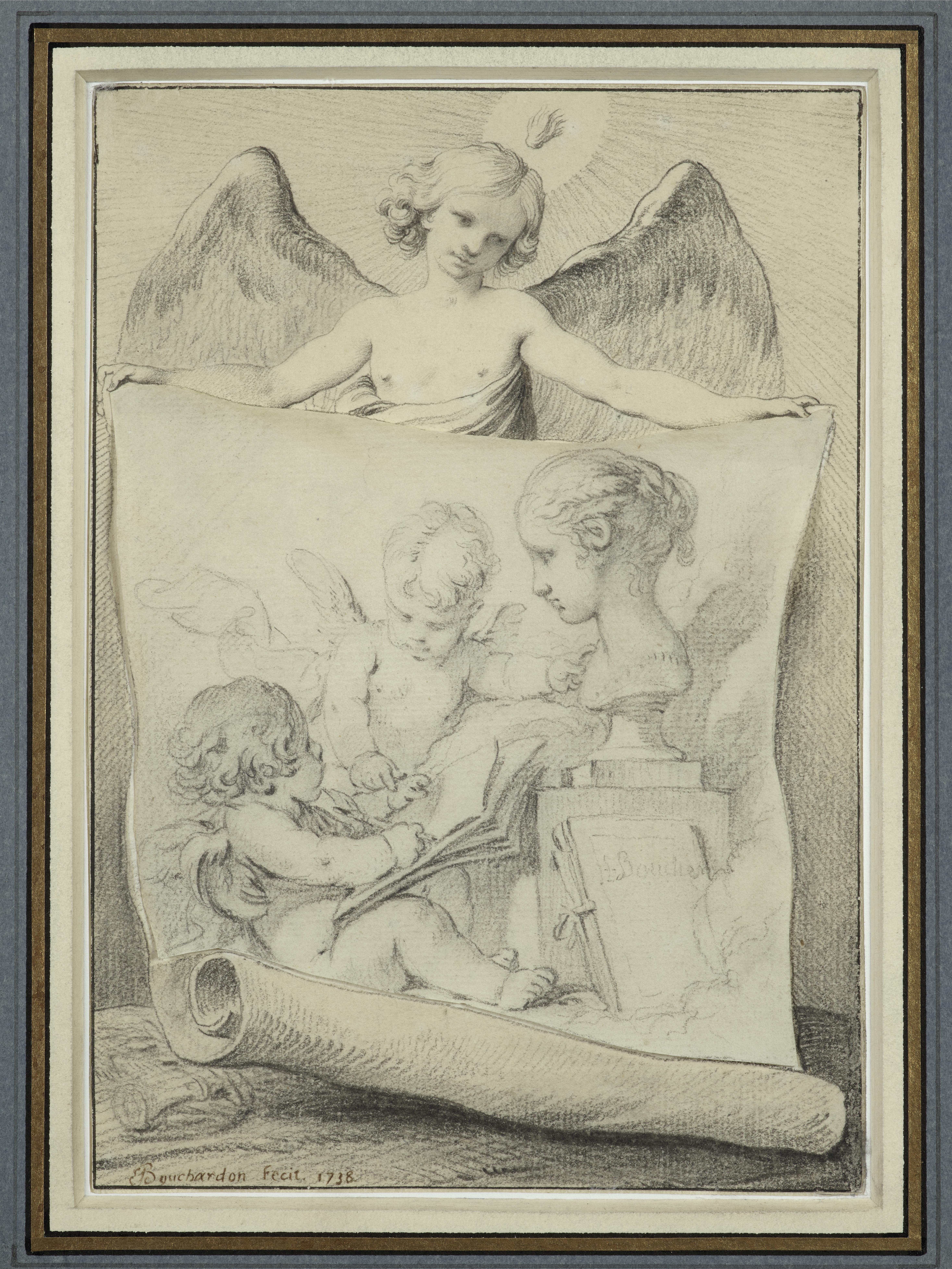 Black chalk, light grey wash (Bouchardon, The Spirit of Learning); black chalk (Boucher), 172 x 120 mm (sheet) Katrin Bellinger Collection, inv. no. 2012-007