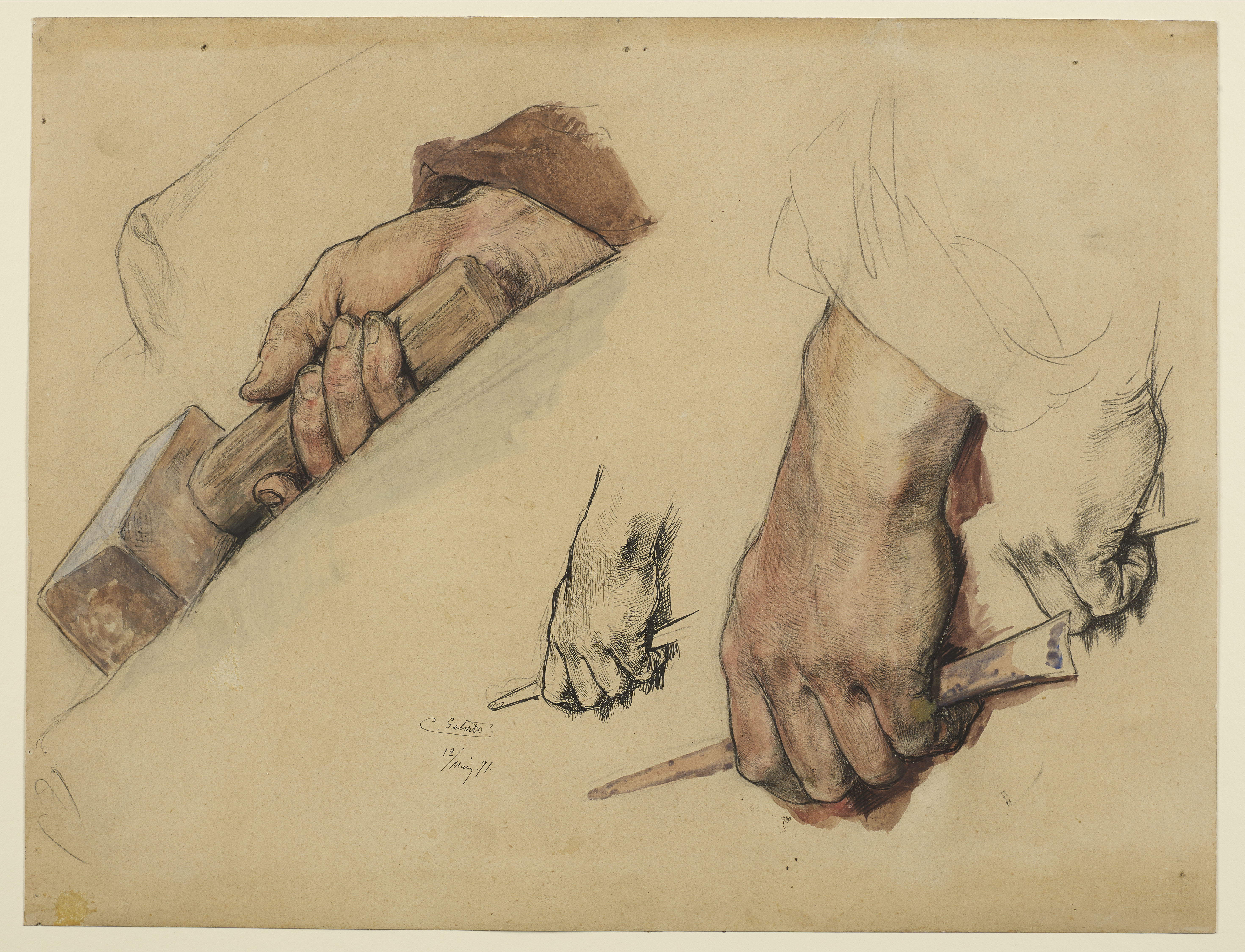Arguably the fundamental instrument of the artist, hands constitute a beguiling topic of investigation. Representing an individual’s hands may bring one closer to the origin of their creative powers. At times equated to portraits or self-portraits, depictions of hands can be as different as the motivations behind them. Vincenzo Gemito’s bronze cast of the hands of his mentor Jean-Louis Ernest Meissonier is not only a tribute to the older master but also a proxy for the man himself, whose company Gemito sorely missed.