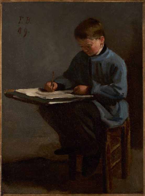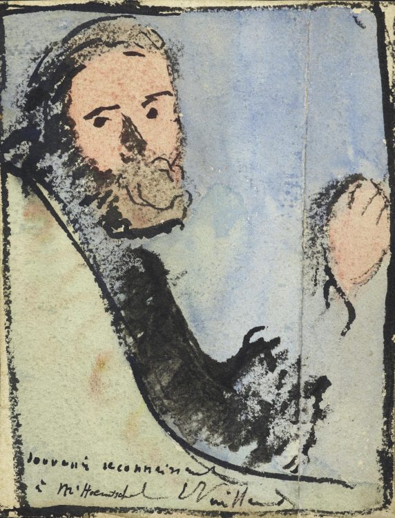 There have been several exciting additions to the collection’s nineteenth-century French holdings. These include an early watercolor self-portrait by Edouard Vuillard, in which the young artist drew himself with the assistance of a mirror. It is dedicated to the interior designer and ceramicist Georges Hoentschel, an important connection for Vuillard given his longstanding interest in combining painting with interior decoration. Another addition from this period is a drawing of Marie Bracquemond at work by her husband Félix, which was acquired alongside several drawings by Marie herself. Félix’s depiction of Marie in profile is a study for his print La Terrasse, which is already a highlight of the print collection.